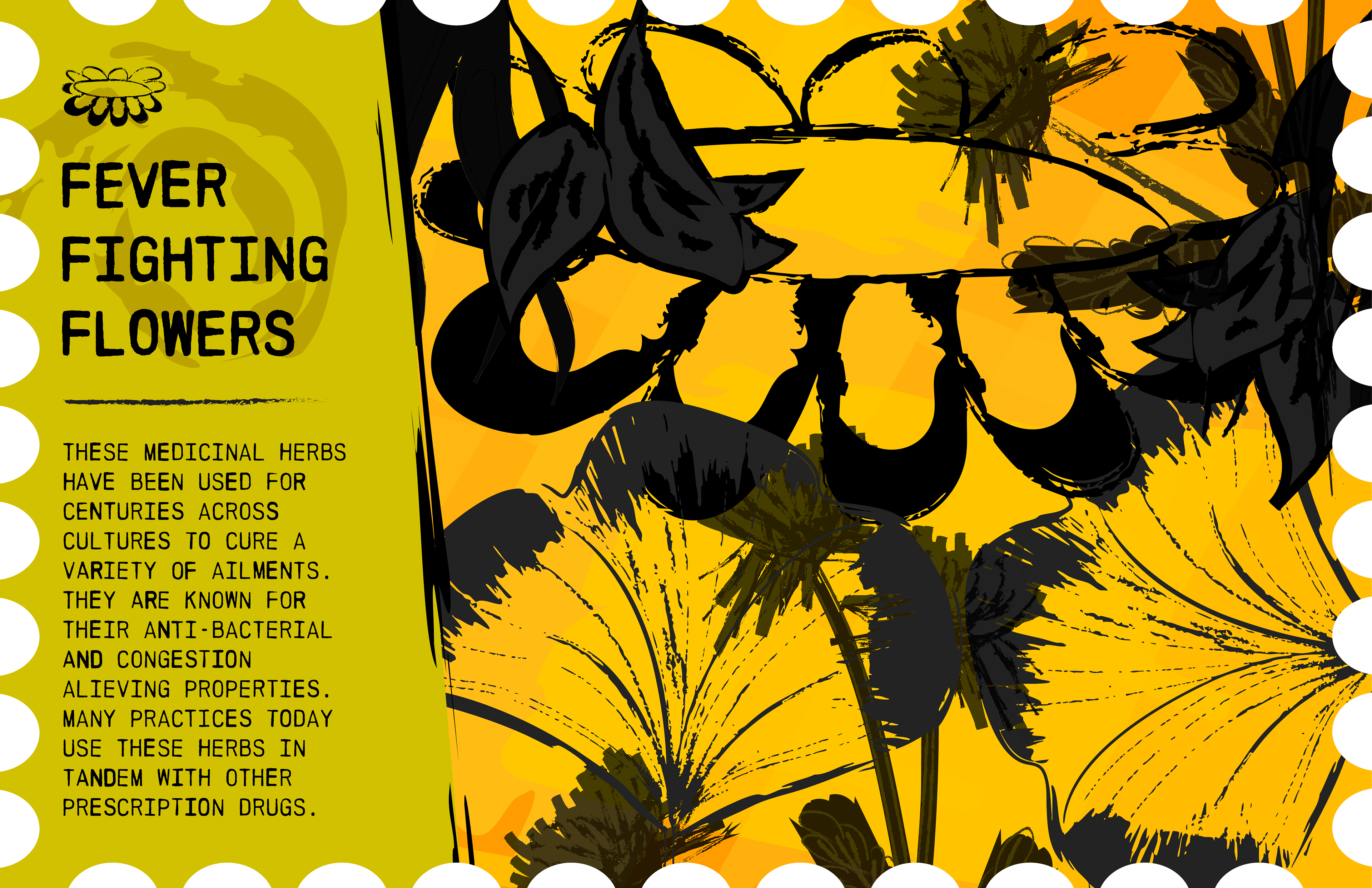Illustrated stamp series focusing on traditional herbs that are thought to help "fight fevers" and cure other ailments.