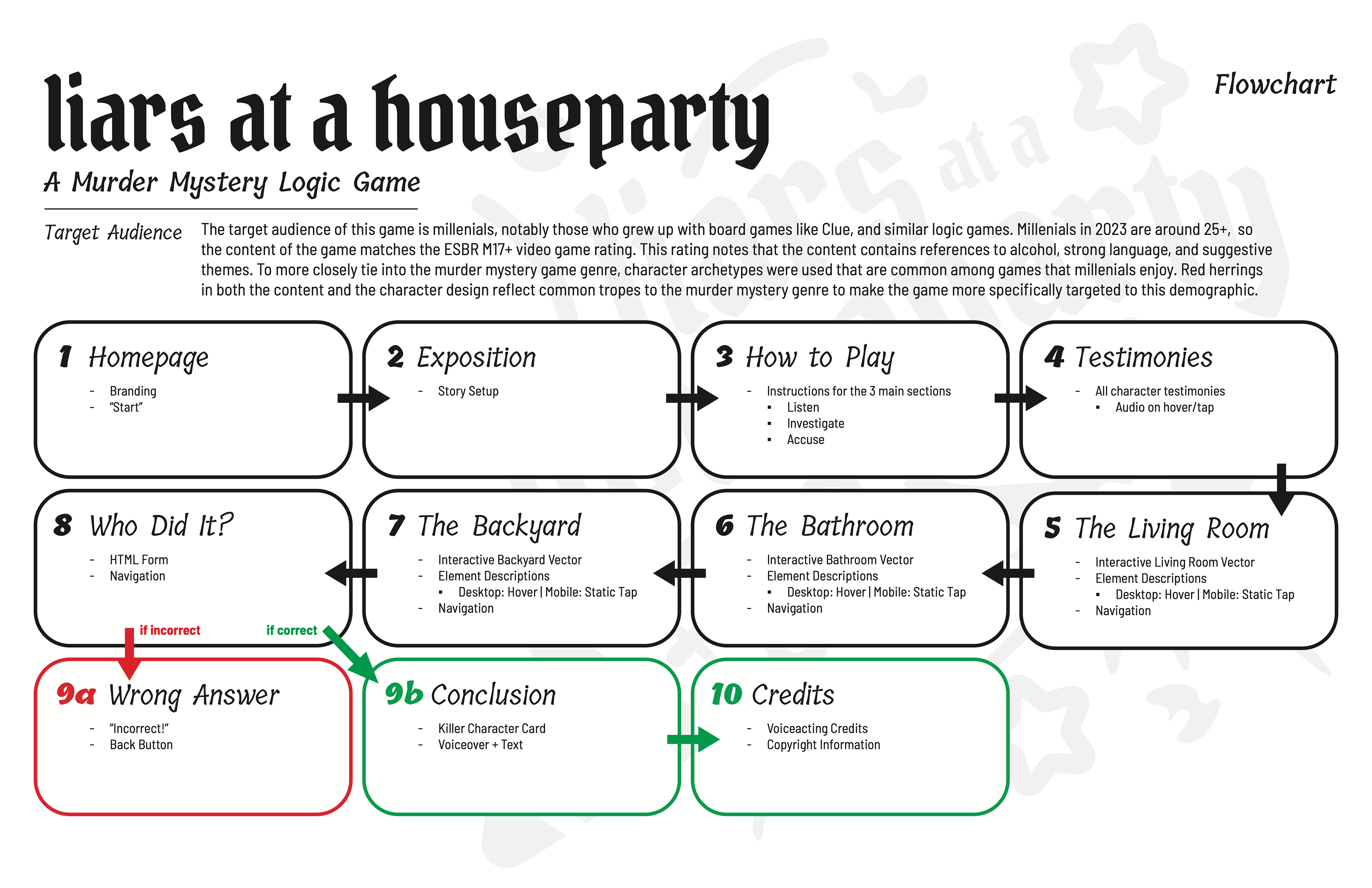 Liars at a Houseparty is a web-based murder mystery game where users uncover who killed "showboat Liz" at her own party.