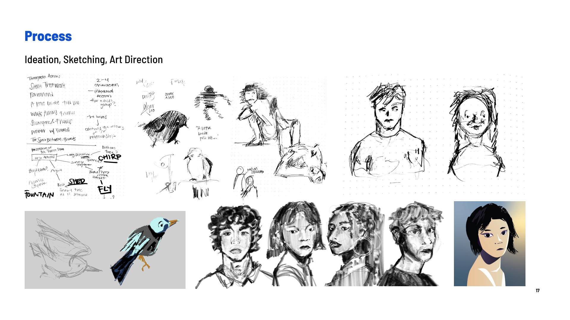 I spent a lot of time developing the art style of my Tamagotchi, and how the interface design could be incorporated/complement the art style. While I enjoyed getting able to draw different scenes and characters, it definitely pulled more of the focus on the animations, rather than the interactions themselves. I had to lean in to storytelling and messaging in the animation to continue the interaction design, simplifying the amount of inputs the user does themselves.